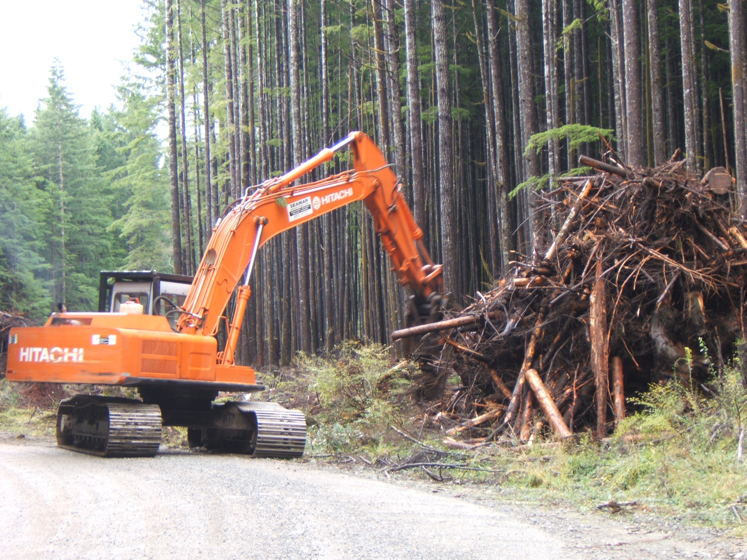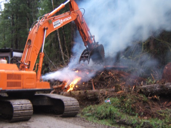 We got some rockin’ steel-toed boots and seriously reflective raincoats. In one of the burnpile pics, you can see her in the distance, talking to someone in a car. Alas, our