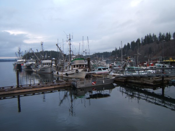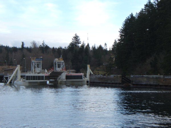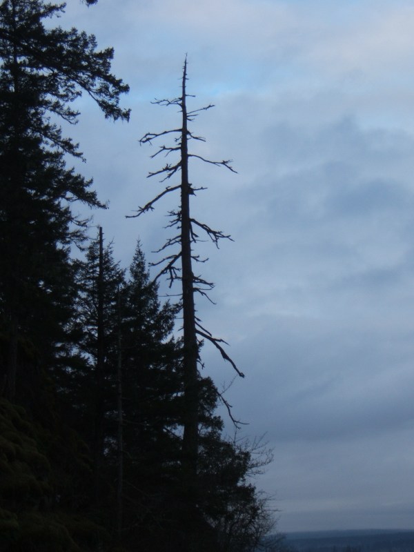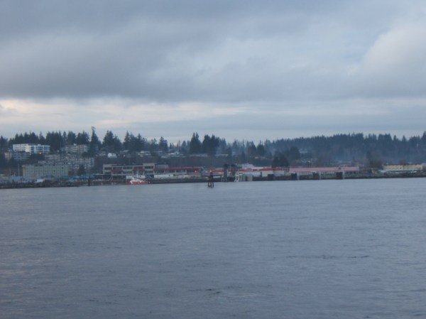 Bald eagles often perch in this bare tree by the ferry berth. Not this trip.