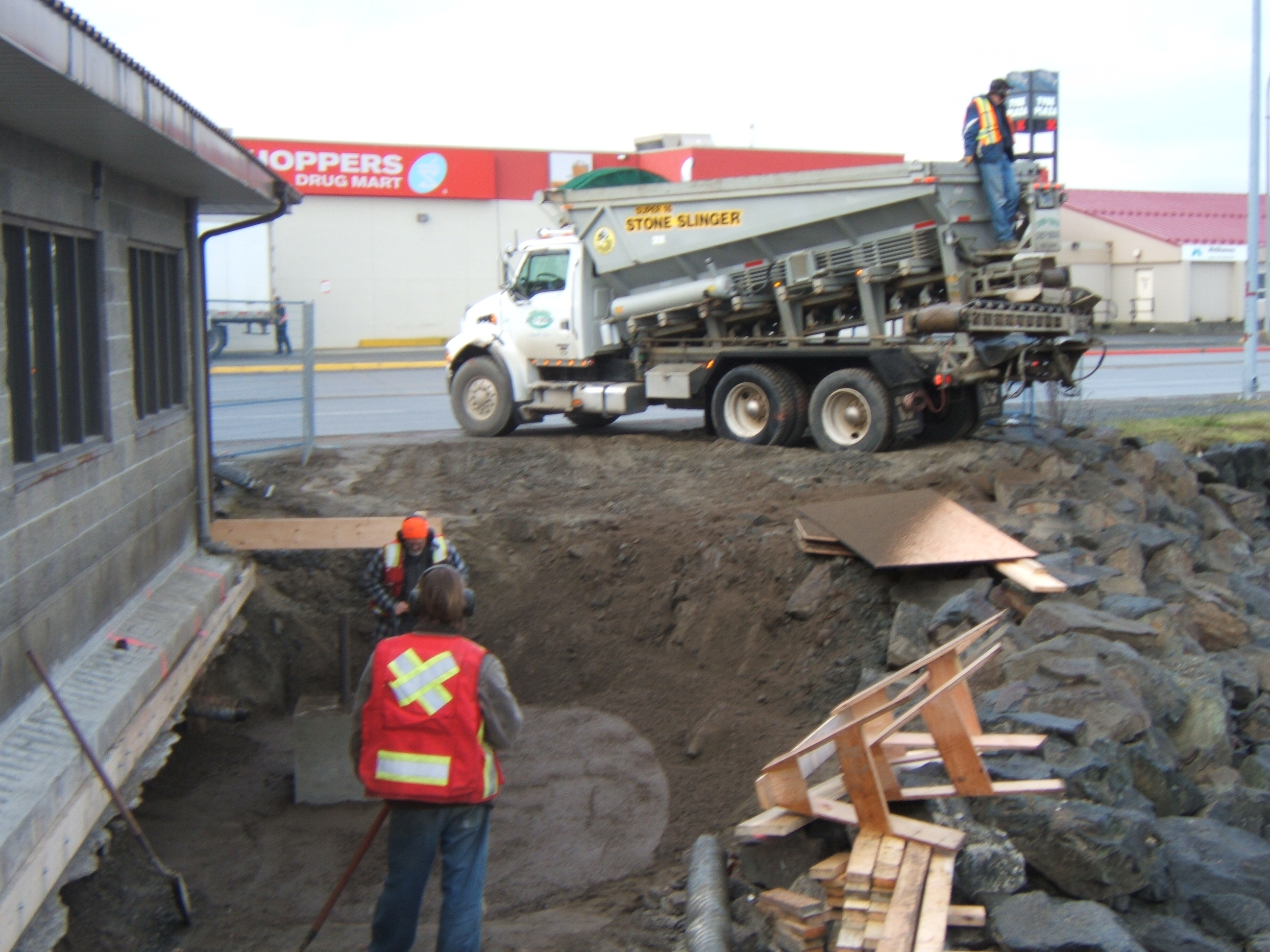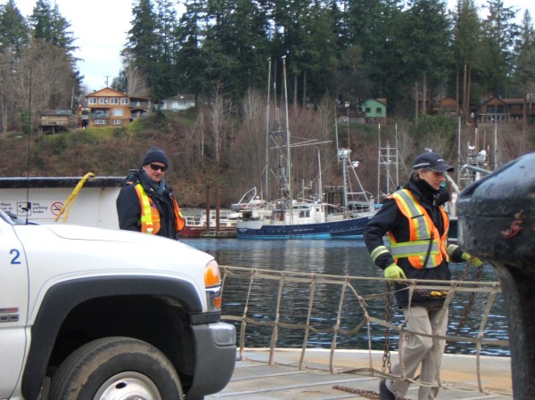 At the mainland terminal, these chaps were reinforcing the foundation of the waiting room.