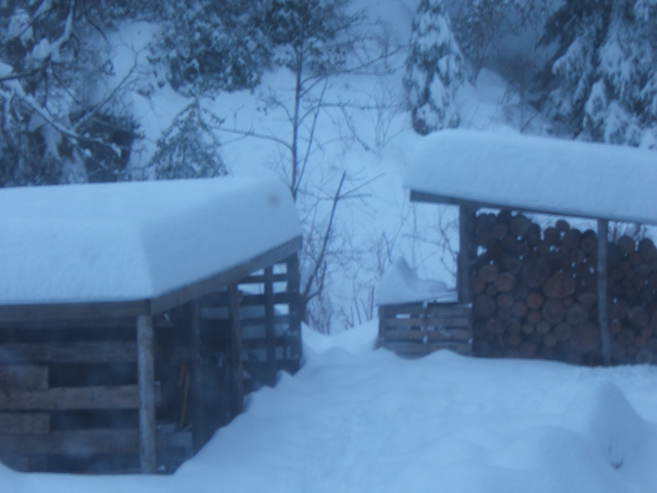 The snow on the woodsheds tested their sturdiness.