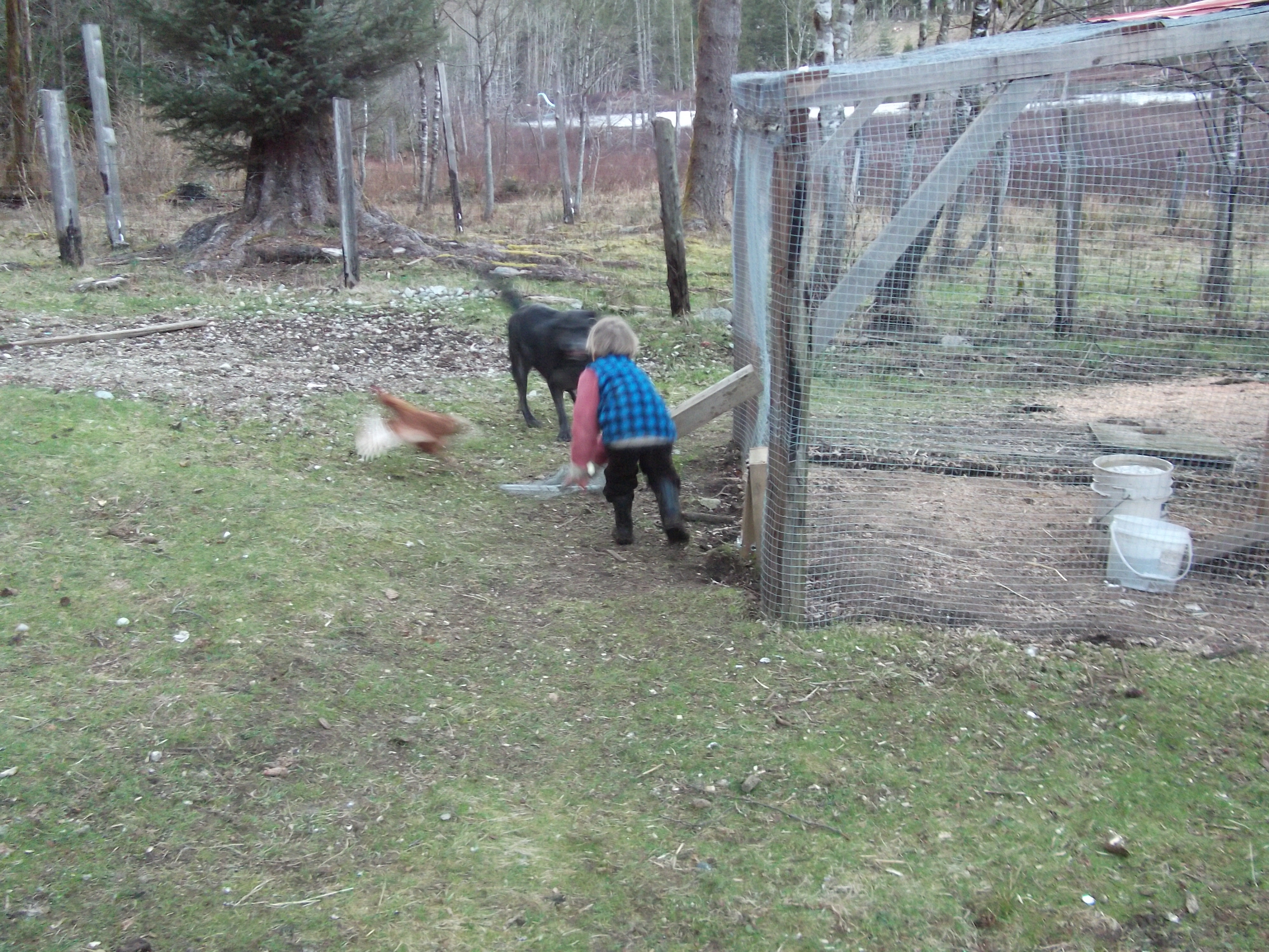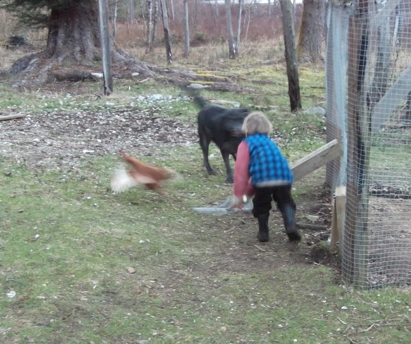 Mowat hones his catching skills by chasing a chicken, assisted by Pharoah.