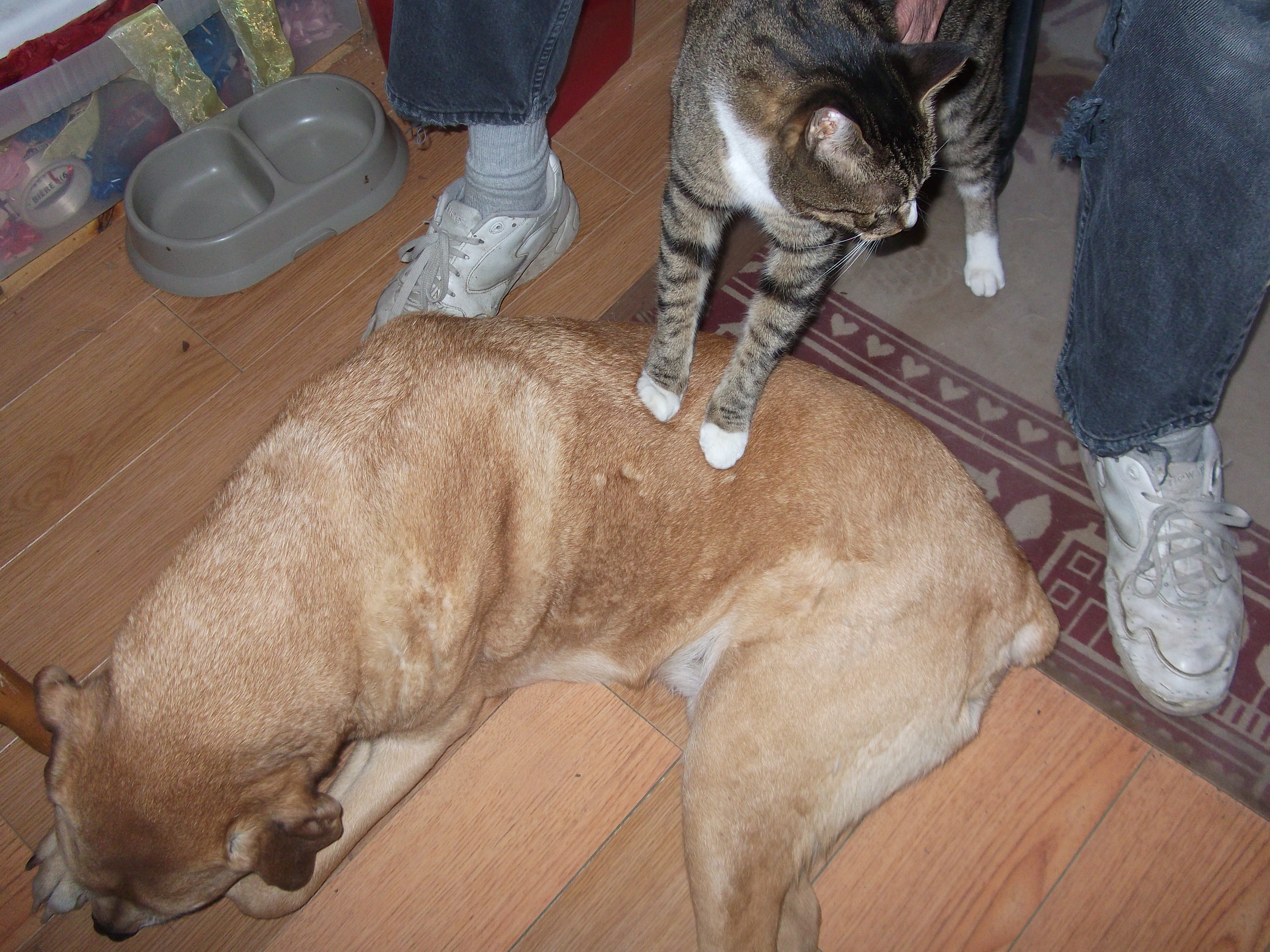 A tumor was blocking circulation to his left front leg. When I put him on the surgi-