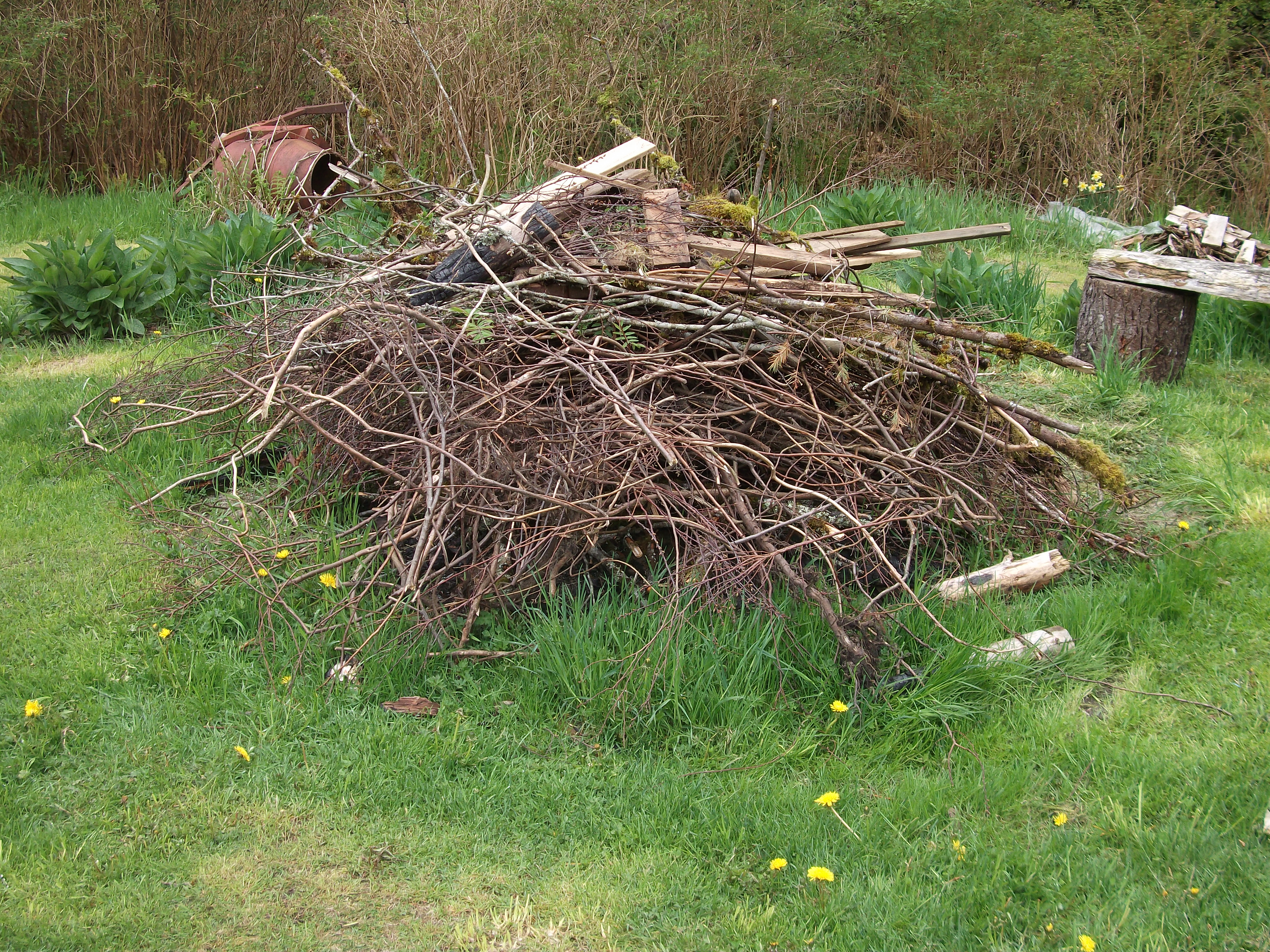 by the back deck. Its centerpiece is a stump our friend Lee gave us. It reminds me