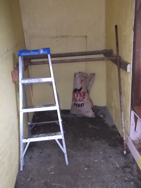 rain I decided to knock off for the day. The hens had been using the dog carrier as