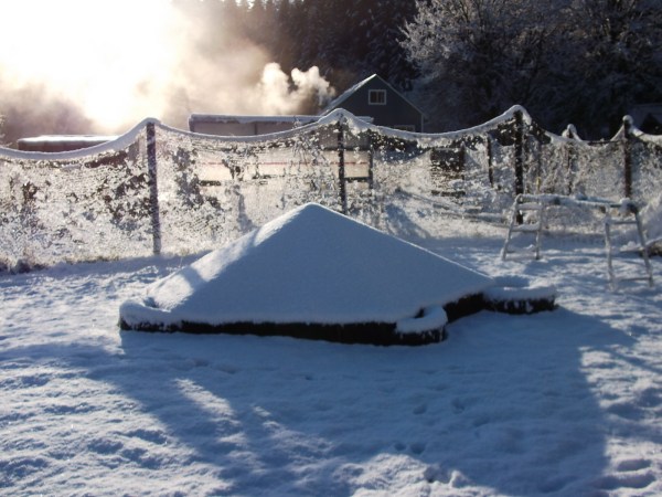 When the snow melts, we’ll let the chickens into the new area to work on the weeds