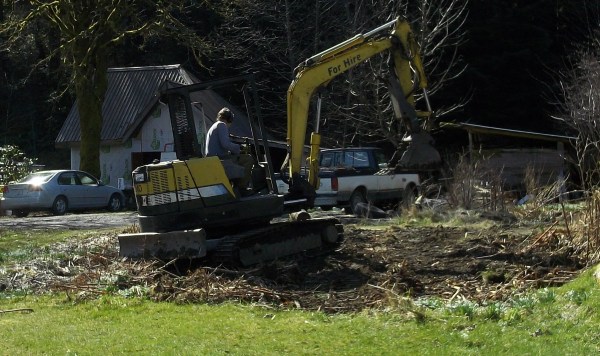 impeded our access to a lovely ribbon of creek. Here’s what he’s done so far: