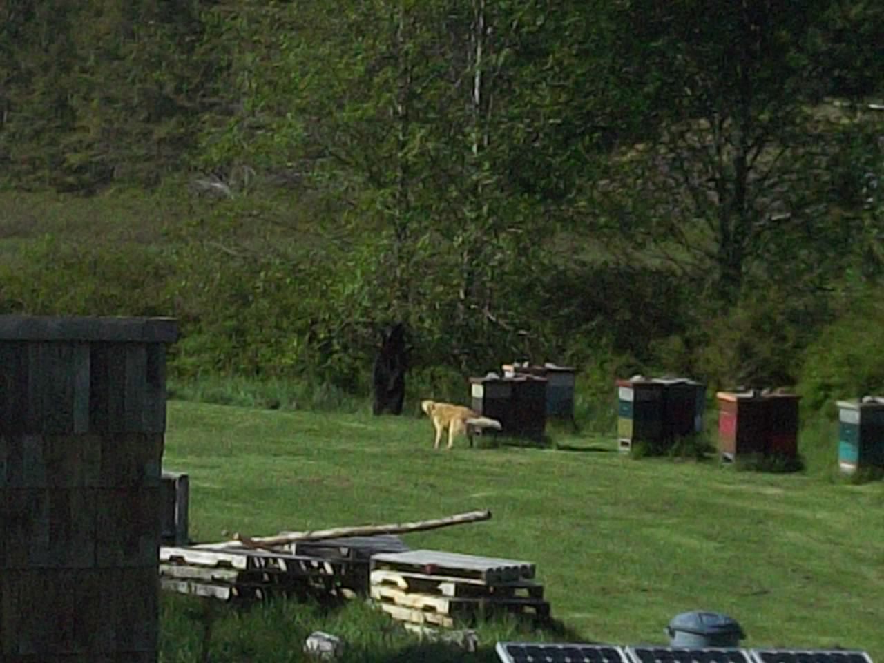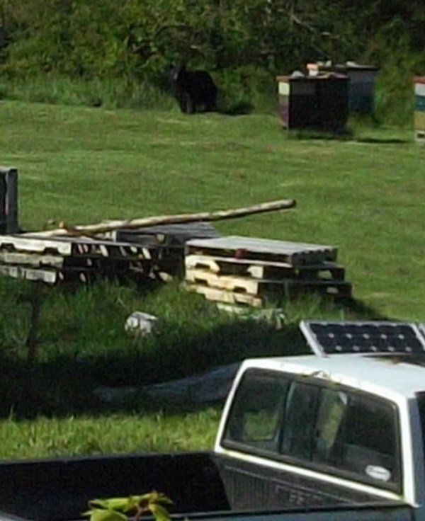 Allen, I’m glad that you, jude, and slinky are allright. It may be time to consider the fact that the bear has established the fact that there is a wonderful, tasty food source there, and believe me, it won’t stop coming back for at least a month after it eats the last comb. I know it goes against the grain, but you might want to contact someone on the island who likes bear for dinner, other than the honored guest, and would be willing to do that for you. In this country, there are game regs that allow people who engage in agriculture, to 86 problem game animals who are commiting “degredation upon crops or livestock. Bee hives are definatly included. I grew up on the stuff, and I like it. Also, there is leaf lard in the stomach cavity of urus that makes the best pie crust on earth. I wish you well, but be very careful, as this bear obviously does not fear either you , jude, or your dog. Think oo buckshot. Michael