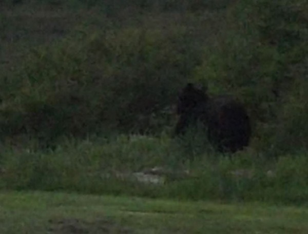 The bear is still around. Jude has shot the gun twice and chased it with the truck. When I