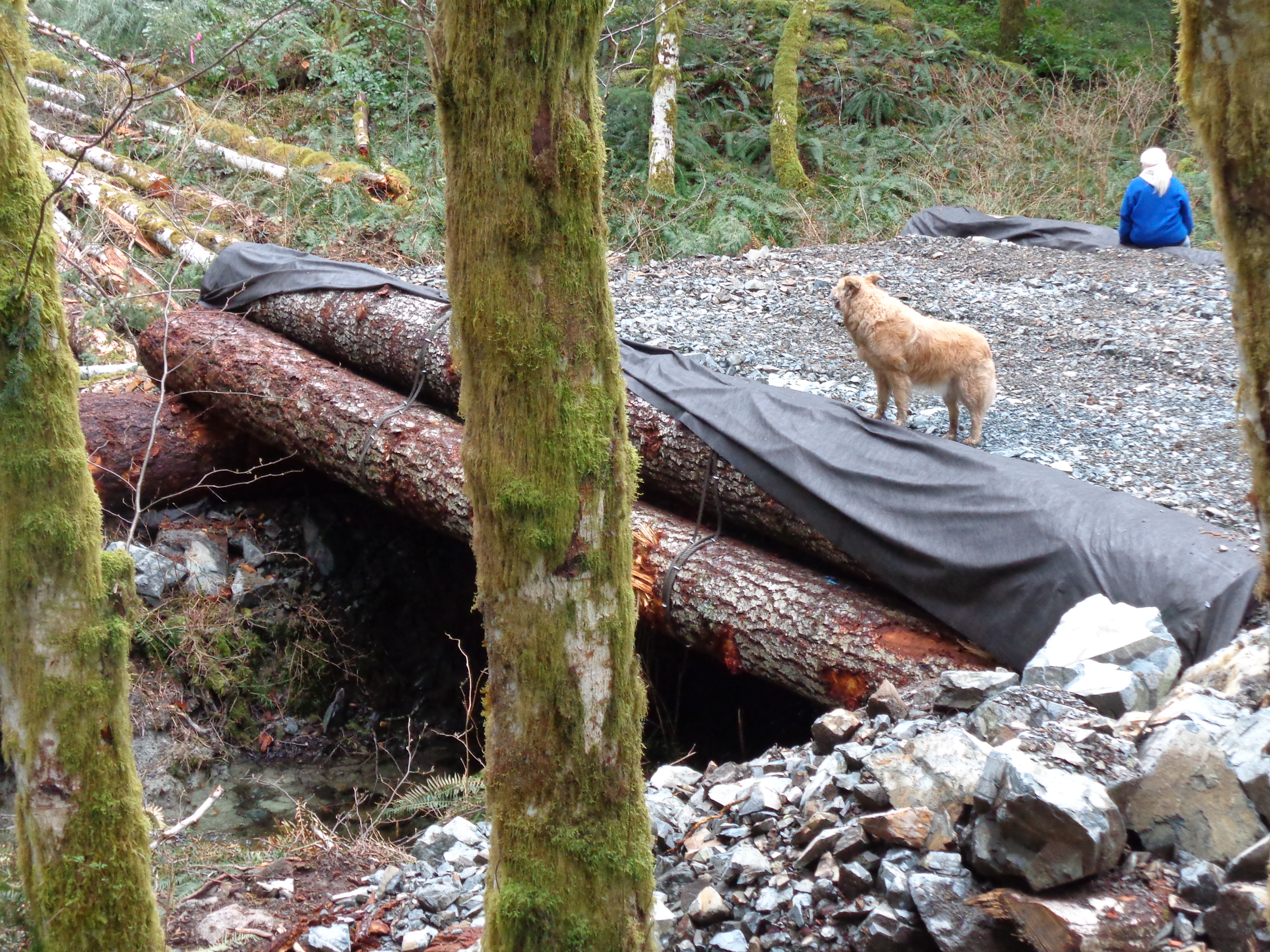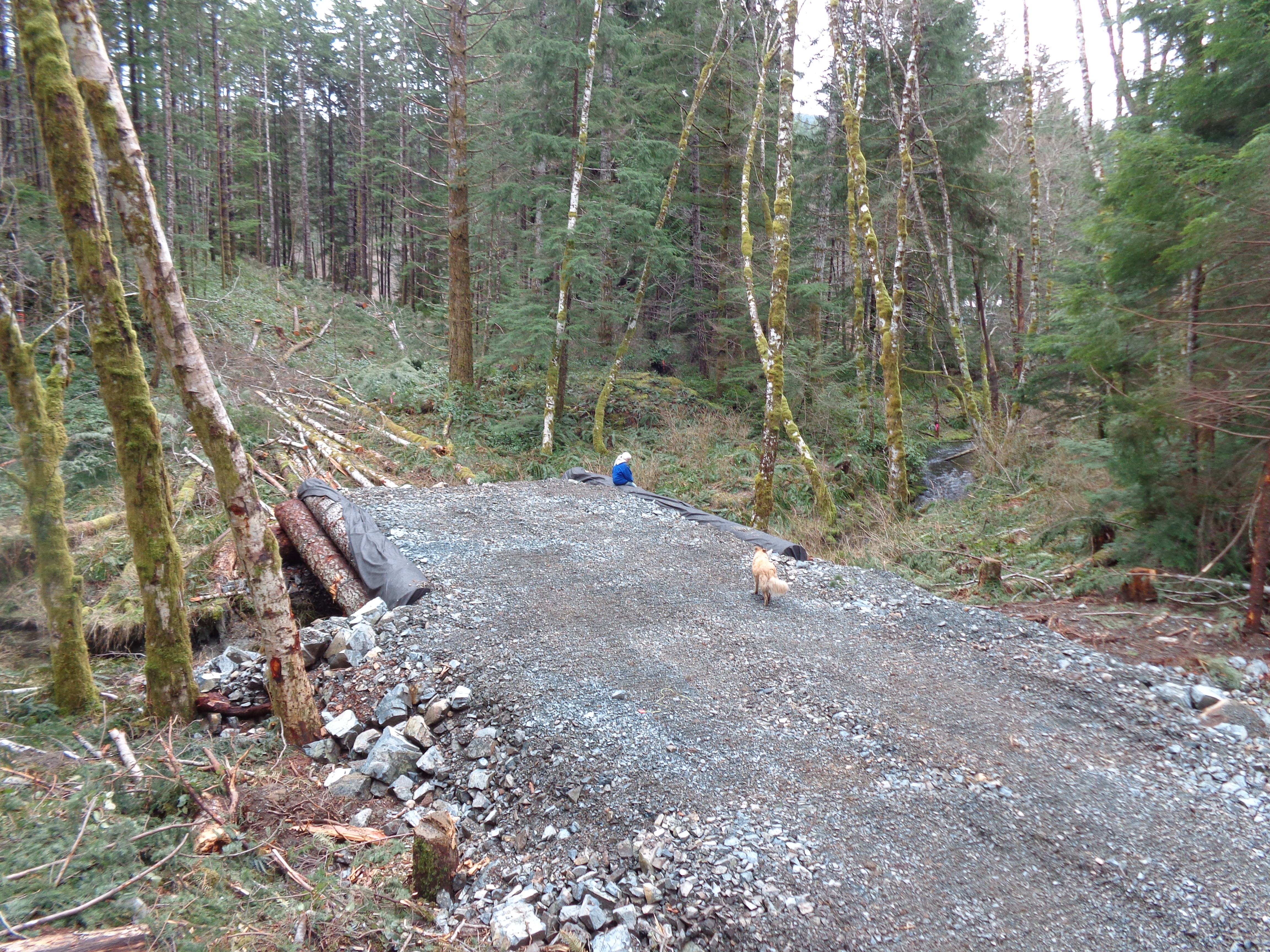 Just behind the big diggie is the bridge it’s building across a large creek. It has to be durable enough to sustain substantial logging truck traffic, so it should serve us long after the big rigs are gone.