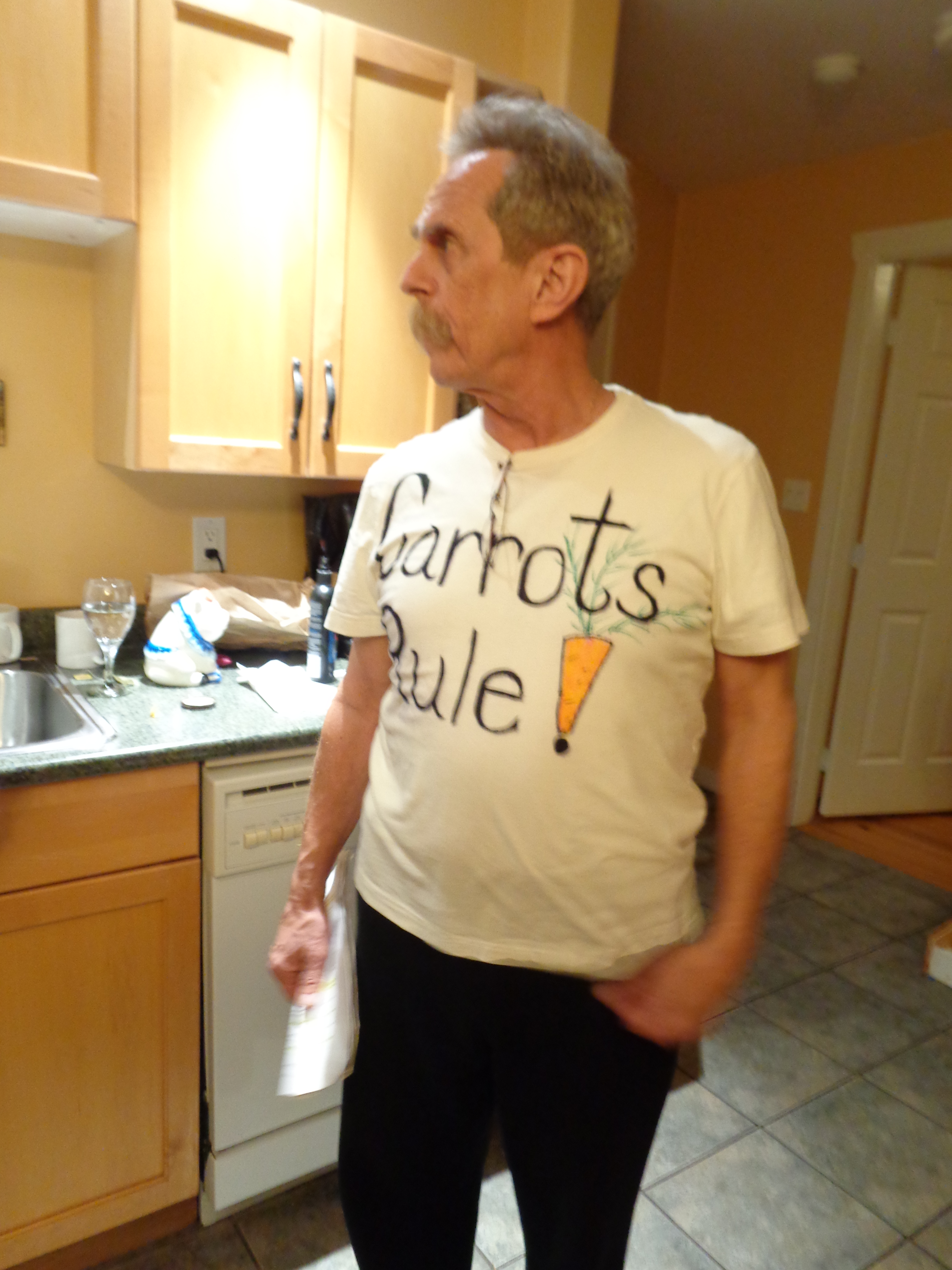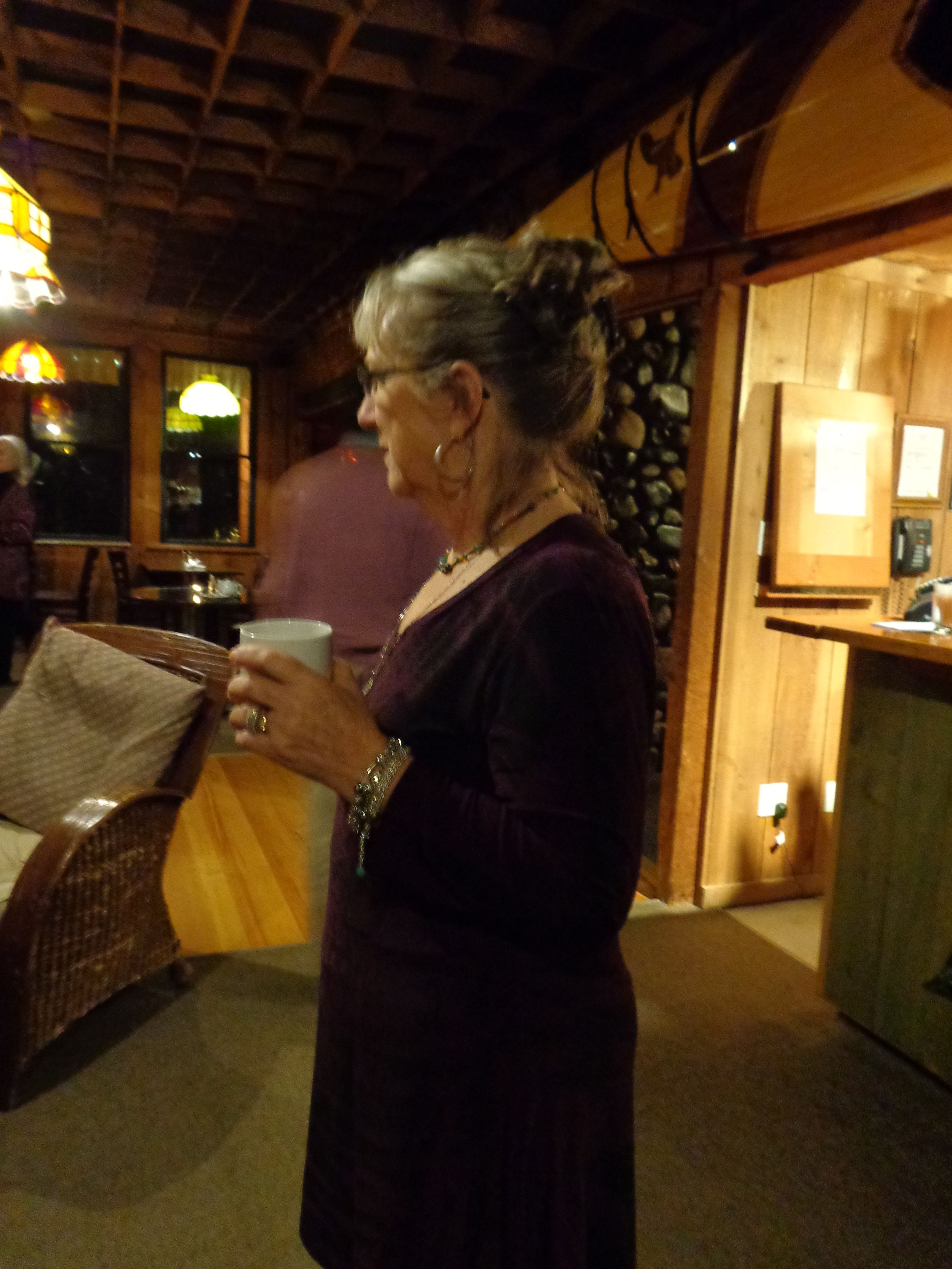 Kris Wellstein (left) and Lois Taylor, two of our militant vegans. Talented singers and actors, they doubled as reporters, and Kris tripled as an earthy grandma. Lois is one of the community owners of Heriot Bay Inn, where the play was performed. I deeply appreciate the chance she took with our production.