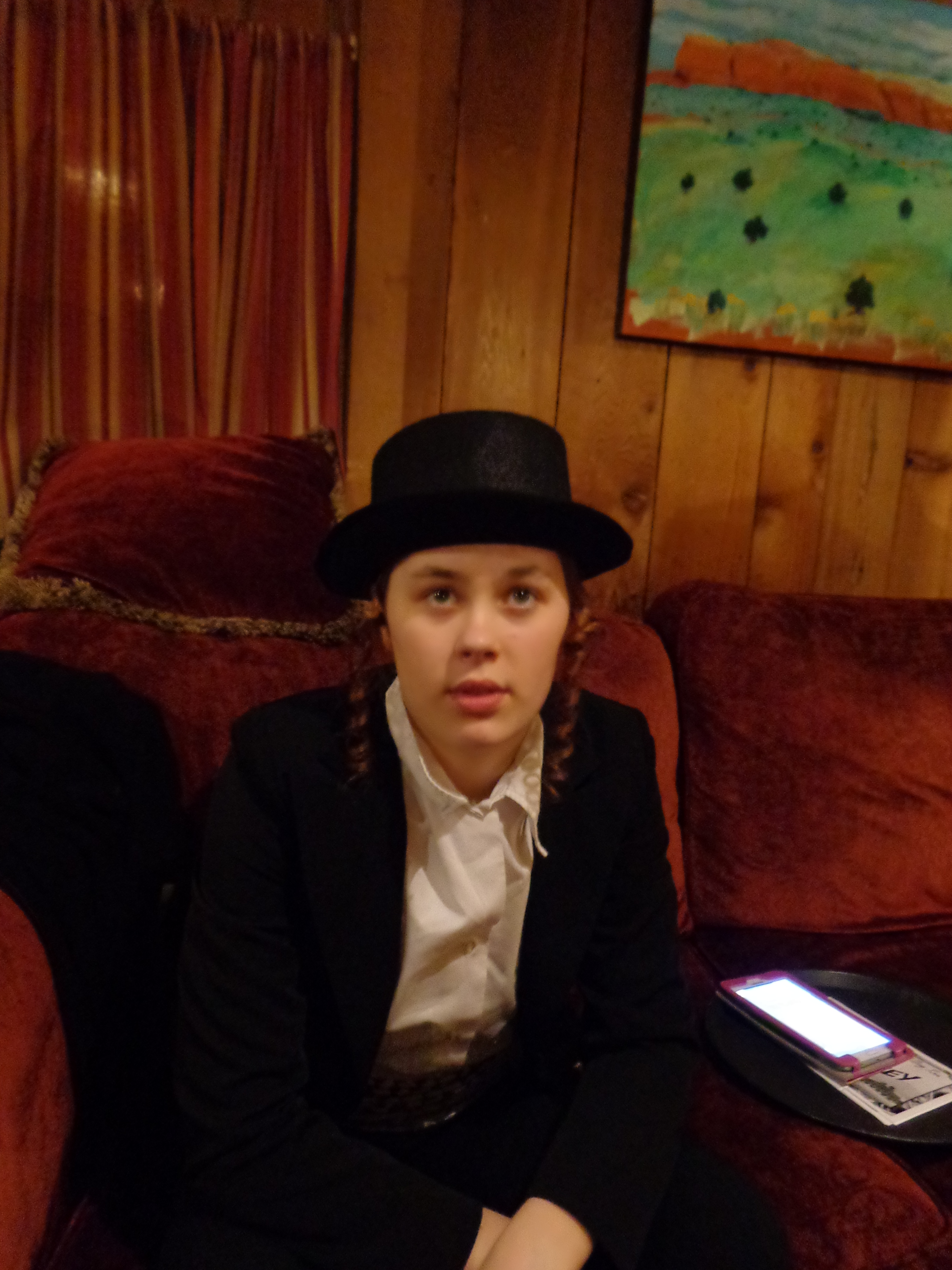 Emma Arps, who first played a vegan, then bent genders to play David, a young lad looking for love and fershtinkiners to confront.